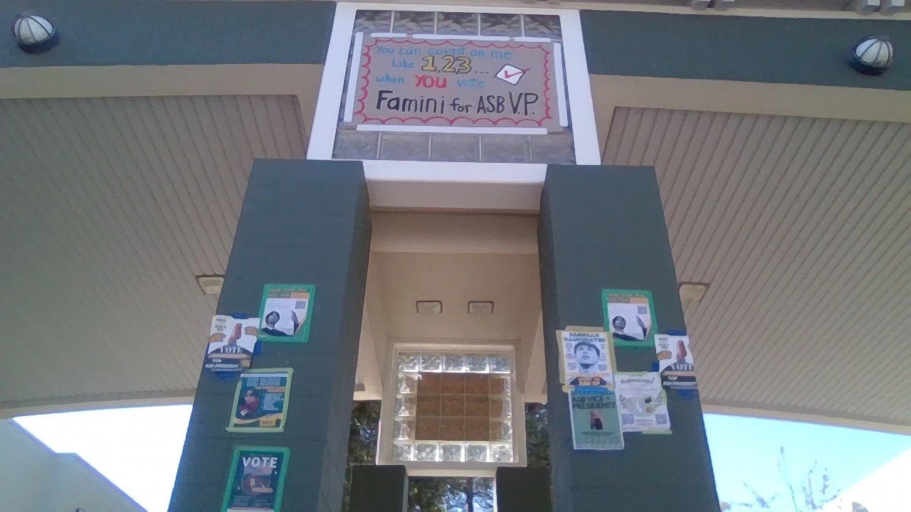 Photo of the posters for each of candidates for ASB leadership covering the MCHS entrance (Esmond Hoang / The Puma Prensa)