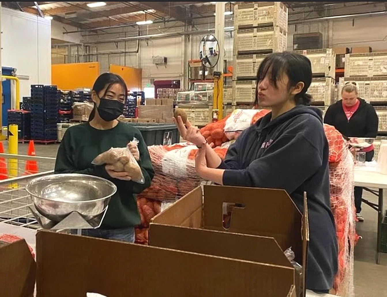 Red Cross Club members volunteering at the Redwood Empire Foodbank (Photo courtesy of Siya Shah)