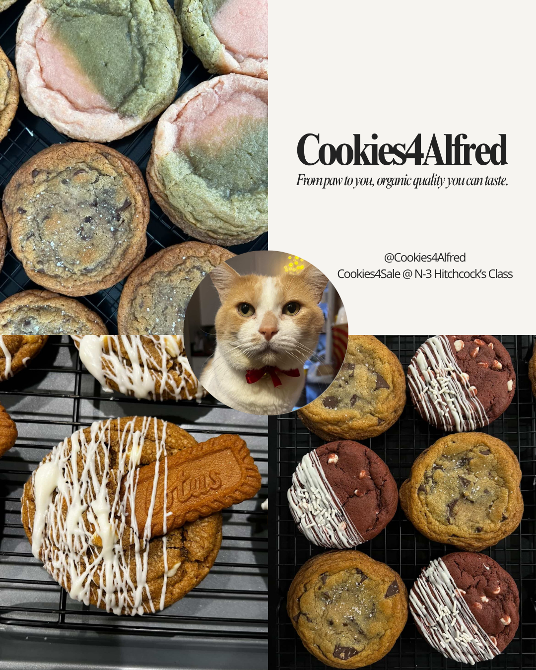 Being an old cat, Maynard needed to pay for Alfred’s medication, food, and litter, so with the entrepreneurial spirit of her mother guiding her, she started the business we all know today: CookiesForAlfred.