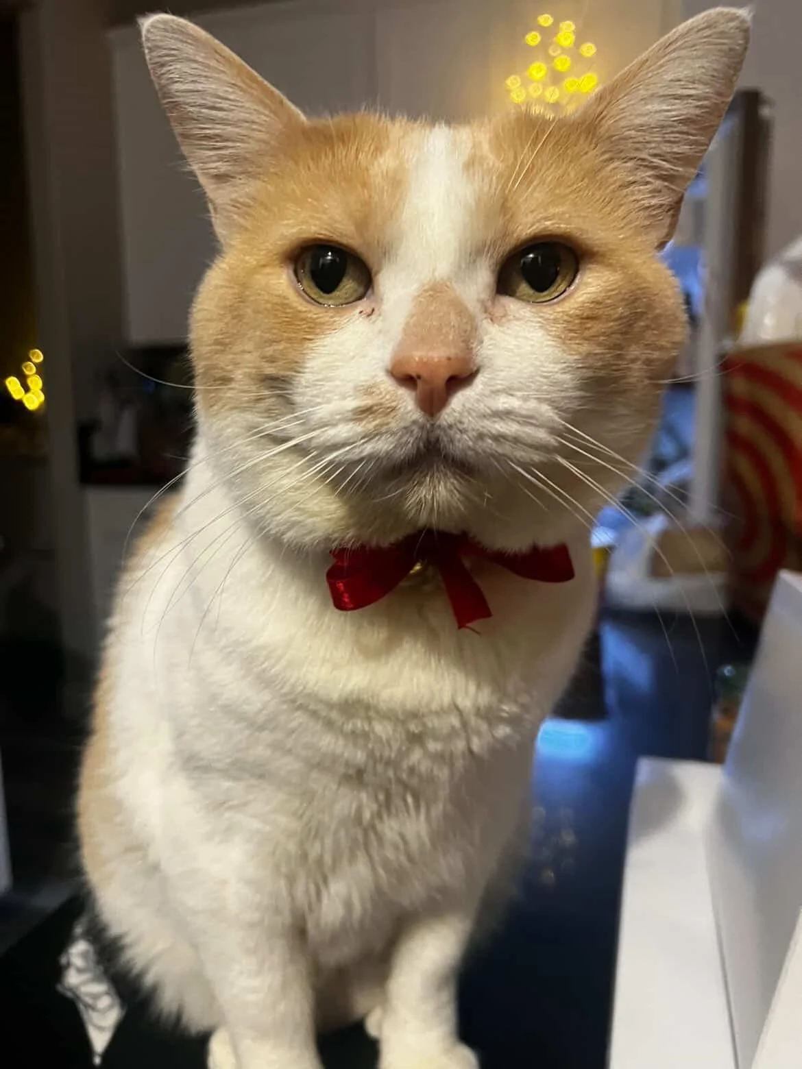 “His fat cheeks immediately drew me in, but he was a senior cat, so I wanted to take him in and give him a good life, so a few weeks later, we [went] back to the shelter, we adopt[ed] him,” recalled Maynard.